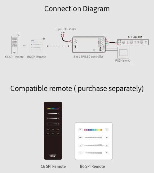 Quantidade de Controlador SPI 3 em 1 para Fita LED Digital Monocor/RGB/RGBW MiBoxer SPIR3