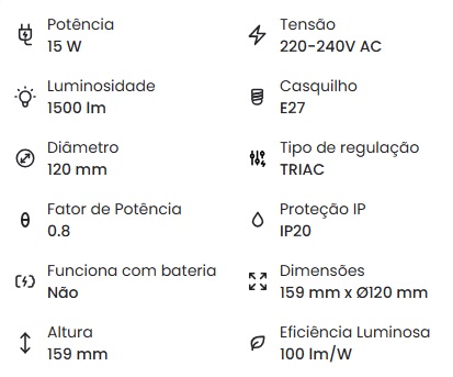 Lâmpada LED Regulável E27 15W 1500 lm G120 6500K