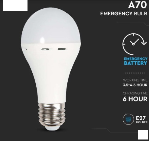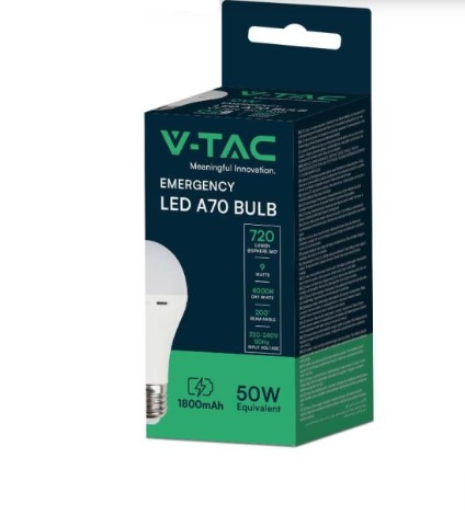 Lâmpada LED V-TAC GLS – Suporte E27 – Emergência – IP20 – Branco – 9W – 720 Lumens – 4000K