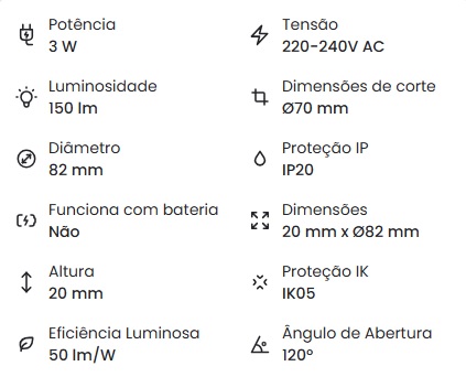 Placa LED Circular SuperSlim 3W Corte Ø 70 mm