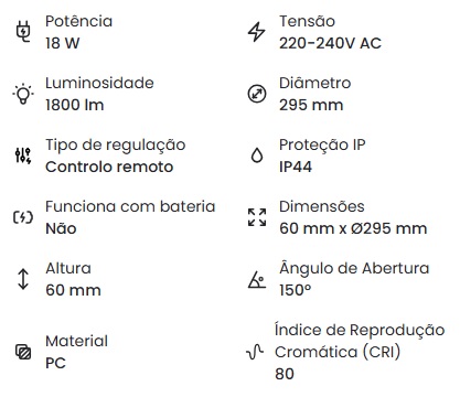 Plafon LED para Exterior 18W Circular com Detector de Movimento Radar com Comando IR Ø300 mm