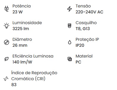 Tubo LED T8 G13 150 cm Nano PC Conexão Uni-Lateral 23W 140 lm/W